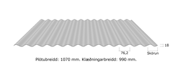 Plötubreidd : 1070mm. Klæðningarbreidd : 990mm.