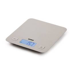 Domo Prestige XL eldhúsvog er úr 100% ryðfríu stáli. Stór, upplýstur skjár gerir mælingar allt að 5kg. XL vigtarflöturinn er fingrafaraþolinn og því auðvelt að þrífa hann. Vigtin gengur fyrir tveimur AAA rafhlöðum (fylgir ekki). Þú getur valið þyngdareiningar á skjánum, g/kg eða oz, og einnig vökva í ml eða fl oz.