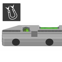 Laser hallamál sem hjálpar þér að mæla nákvæmlega. Sérstakar gormaklemmur sem eru tilvaldar fyrir flísalögn. Segulfesting og höggheld plasthlíf með gúmmíhúðuðum gripum. Nákvæmni +/- 0,5mm. Notar 2x 1,5V LR03 (AAA) rafhlöður.