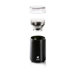 Malaðu kaffibaunirnar þínar sjálfur með rafmagns kaffikvörninni. Tækið er auðvelt í notkun; fylltu geyminn með allt að 70g af baunum, snúðu toppnum stuttlega fyrir grófa mölun eða lengur til að fá fína mölun.