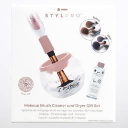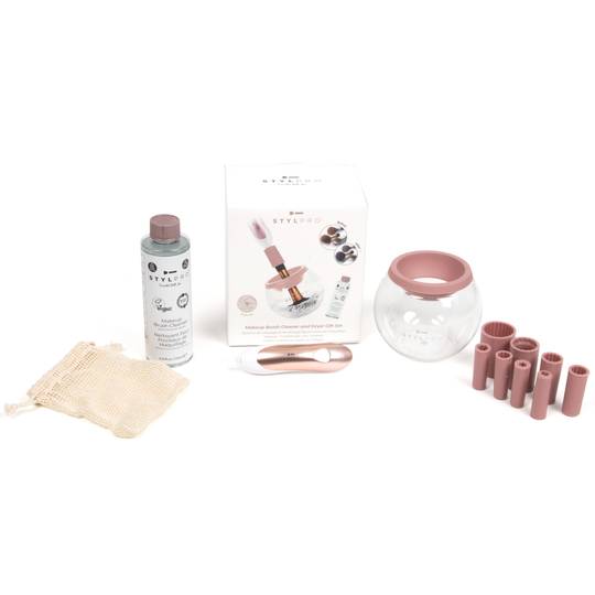 STYLPRO förðunarburstahreinsigjafasettið kemur ekki bara með fallegu bleiku og hvítu STYLPRO tæki, heldur einnig 250ml flösku af Vegan Makeup Brush Cleanser og STYLPRO skál með bleikum hálsi. Þetta gjafasett er fullkomið fyrir alla sem kunna að meta lausnir sem spara tíma.