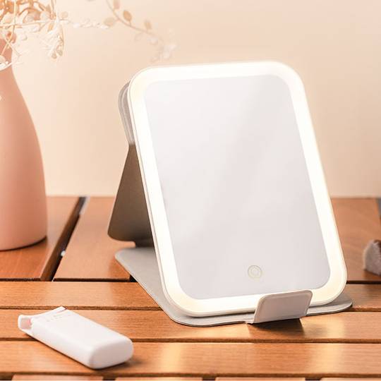 On Tour Petit LED spegillinn er nettur og léttur ferðaspegill. Spegillinn kemur í fallegu bleiku hulstri sem verndar hann og er einnig notaður sem standur. Hægt er að nota spegilinn bæði lárétt og lóðrétt.