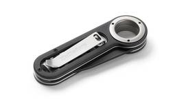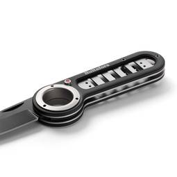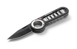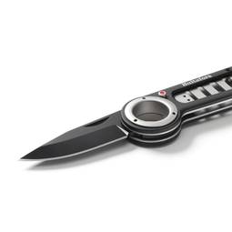 Sterkur vasahnífur með svarthúðuðu áli, ryðfríu stáli hlutum og húðuðu svörtu blaði úr ryðfríu hnífsstáli. Fullkominn félagi í skóginum eða í veiðiferðinni. Einföld og örugg læsing á blaðinu með hnappi á hlið handfangsins. Beltaklemman er færanleg og hægt að festa hana báðum megin við handfangið. Þetta gerir þér kleift að velja hvernig þú vilt bera hnífinn, festan við belti eða innan í vasa.